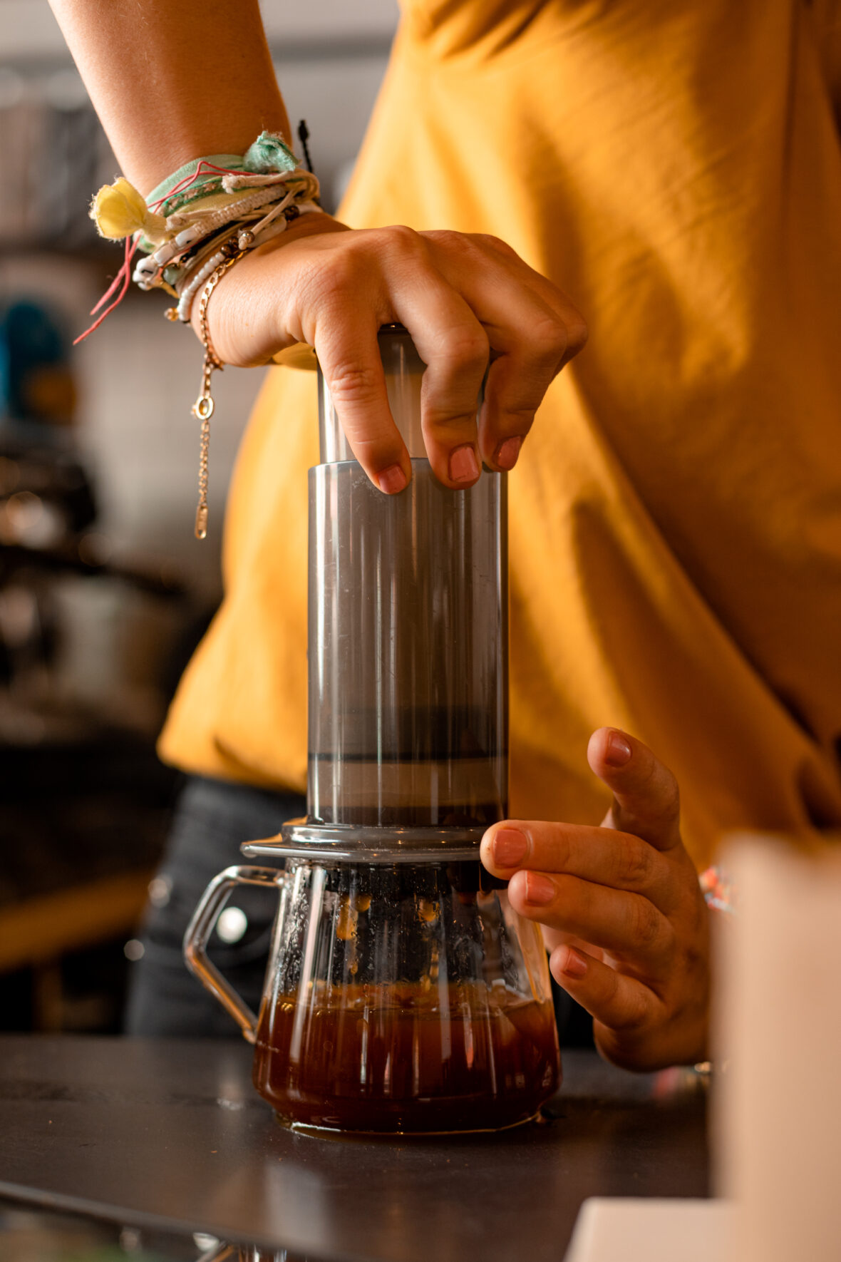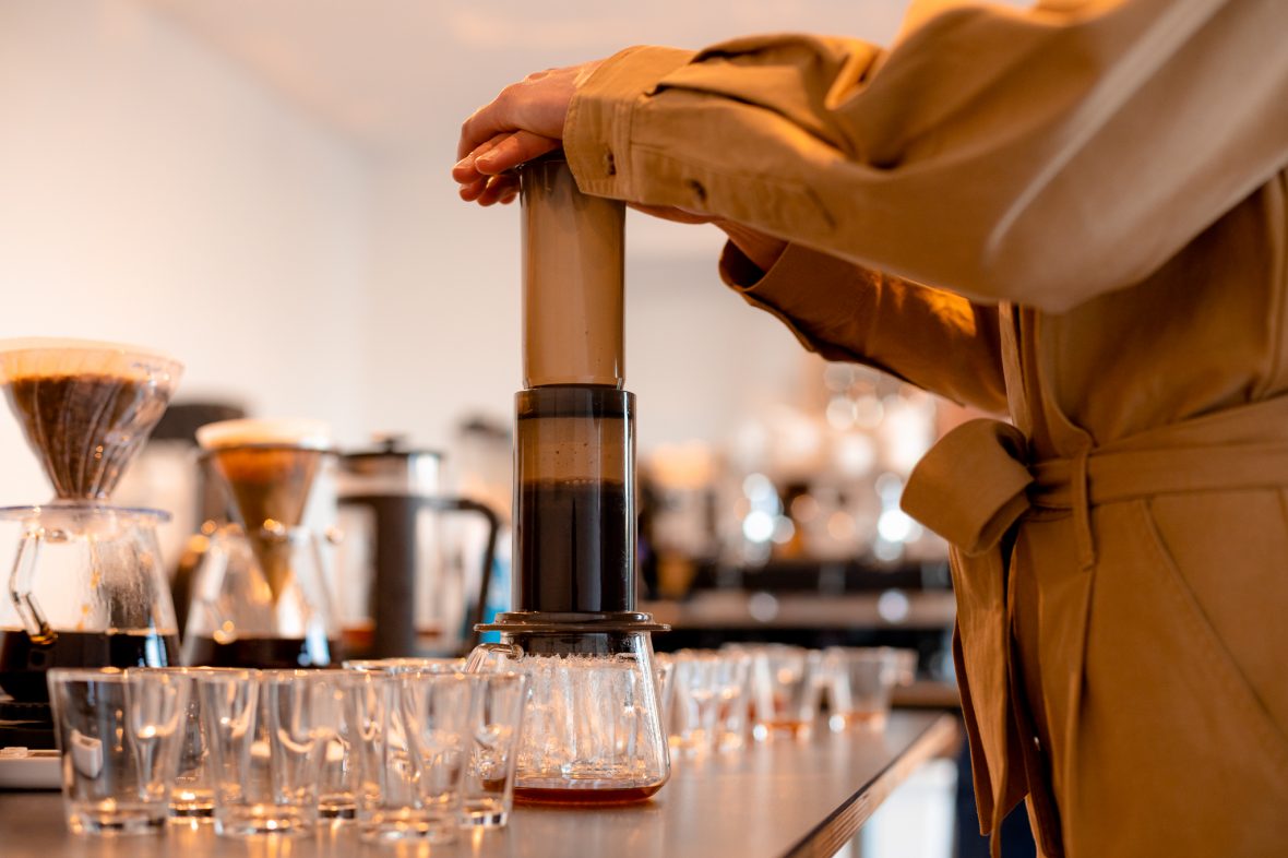 • Aeropress – speels, simpel en smakelijk! Met de Aeropress kan je alle kanten op en geeft je veel ruimte om te experimenteren met je extractie. De koffie is vaak intenser van smaak en heeft een wat hogere bitterheid.