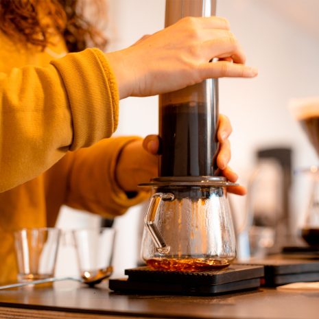 In 2005 werd de wereld geïntroduceerd aan een nieuwe filtermethode: de Aeropress! Bij een Aeropress meng je de koffie samen het water in een cilinder. Aan de onderkant is deze voorzien van een filter. Door de zuiger boven op de cilinder te plaatsen en met kracht naar beneden te duwen scheiden we de gemalen koffie en het water. De Aeropress is speels, simpel en smakelijk!